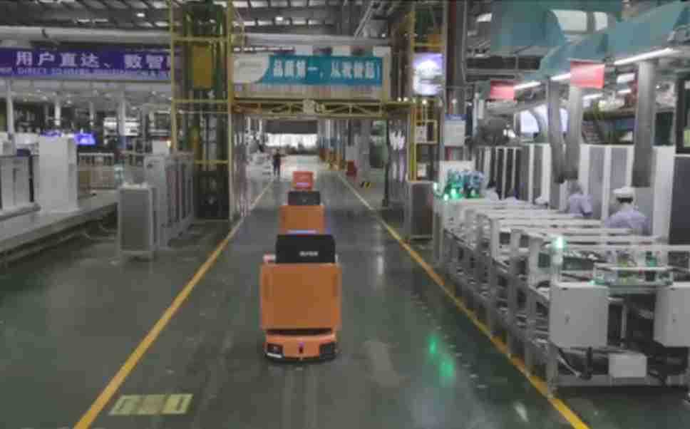 为车载冰箱物流配送打造的智能解决方案,,,,包含产中物流通过潜伏举升AMR搬运至线边,,,产后成品物流智能仓储,,流程包含产中物流智能齐套入库,,,线边安灯叫料AMR智能配送至线边,,,,成品入库、、、出库,,,通过无人堆高车机器人,,,智能仓储管理替代人工作业管理,,,,实现更高存储、、、、更高效率、、更具柔性化的解决方案。。。